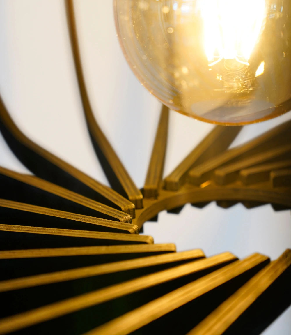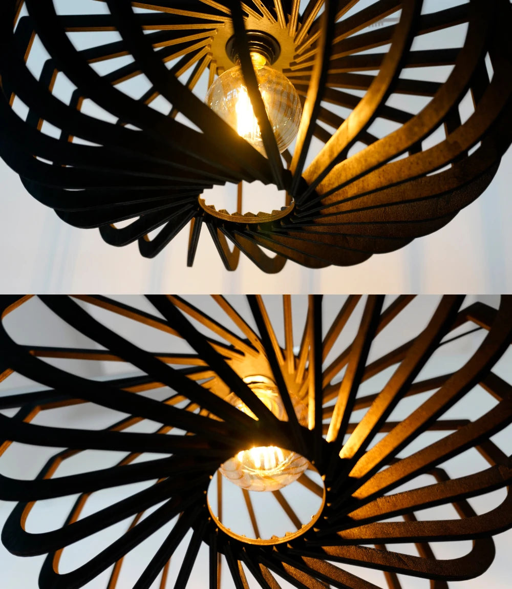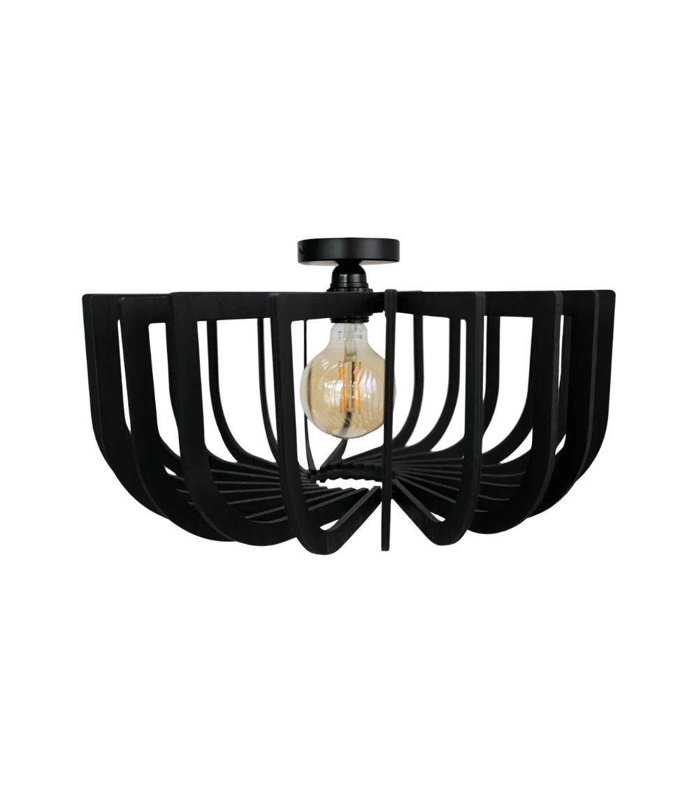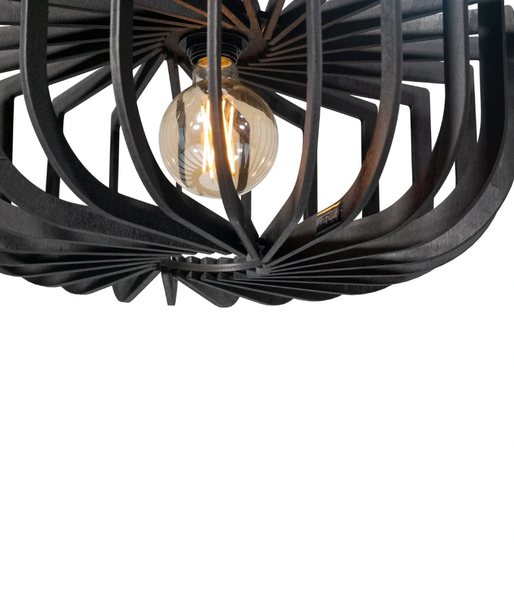 Crafted from natural wood and finished in matte black, Micha redefines modern flush mount lighting. Its semi-flush structure casts geometric shadows that change with every viewing angle—bringing subtle motion and depth to compact spaces.