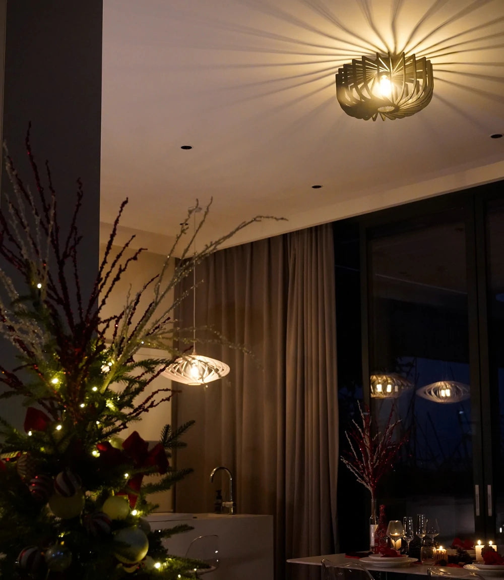 Micha transforms your ceiling into a visual focal point. Its circular frame and precise negative space create radiant light projections—ideal for low ceilings that still deserve artistic lighting.