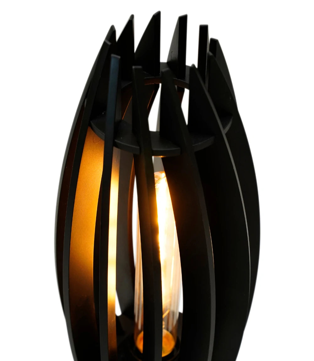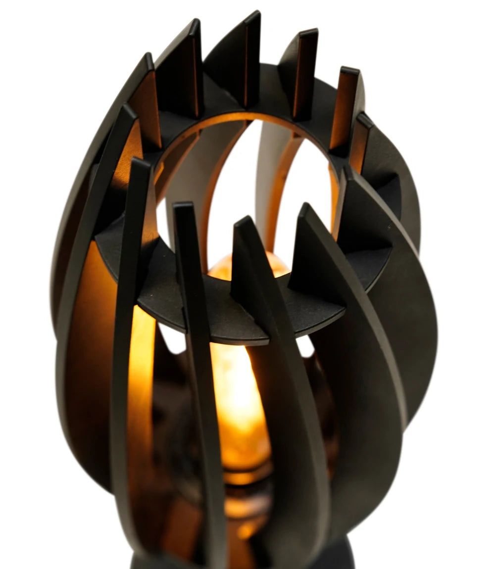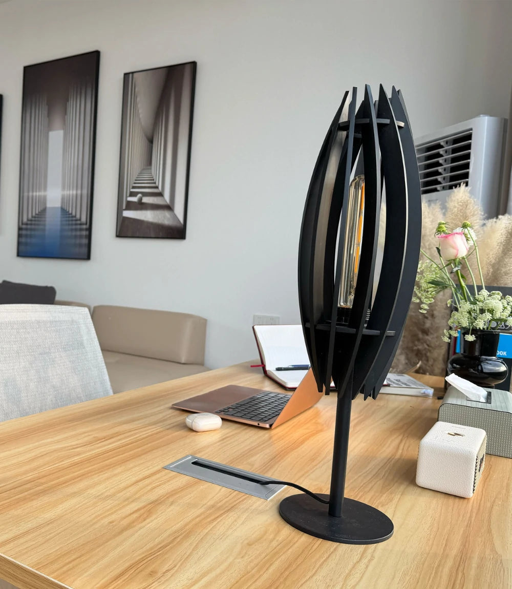 Refined in form, effortless in function—the Needle Radiant Table Lamp brings sculptural elegance to your work or living space. Its narrow vertical design and matte black finish blend naturally into modern interiors, while petal-inspired panels gently filter light, casting soft shadows that create a calm, ambient atmosphere.